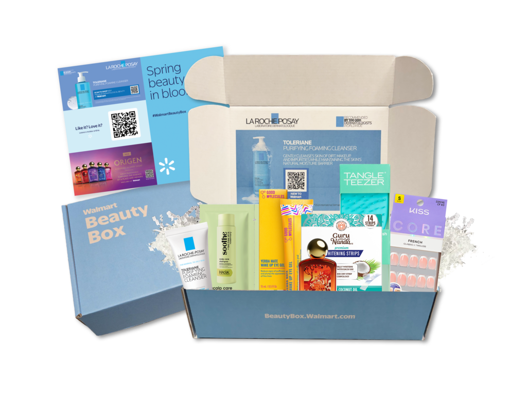 Feature on beautybox.walmart.com, branded insert and email content to drive traffic to Walmart.com and stores